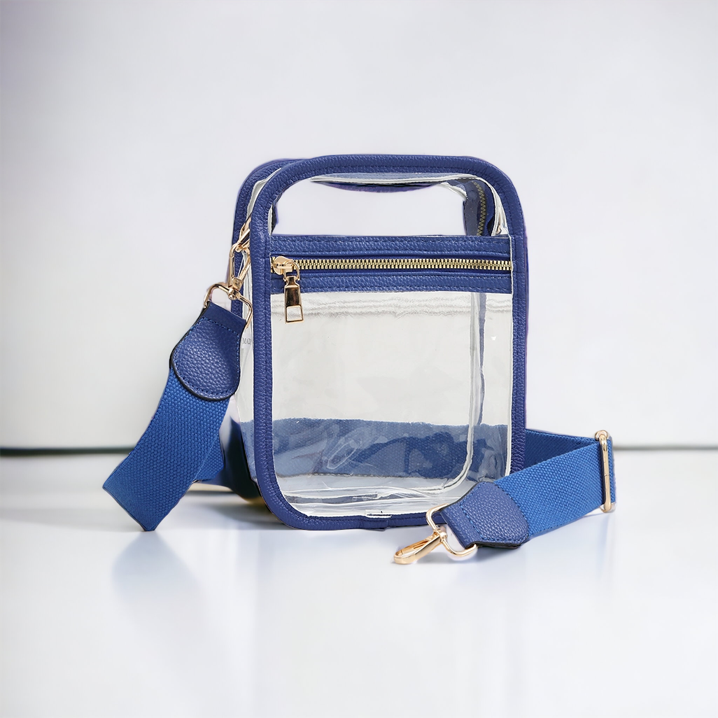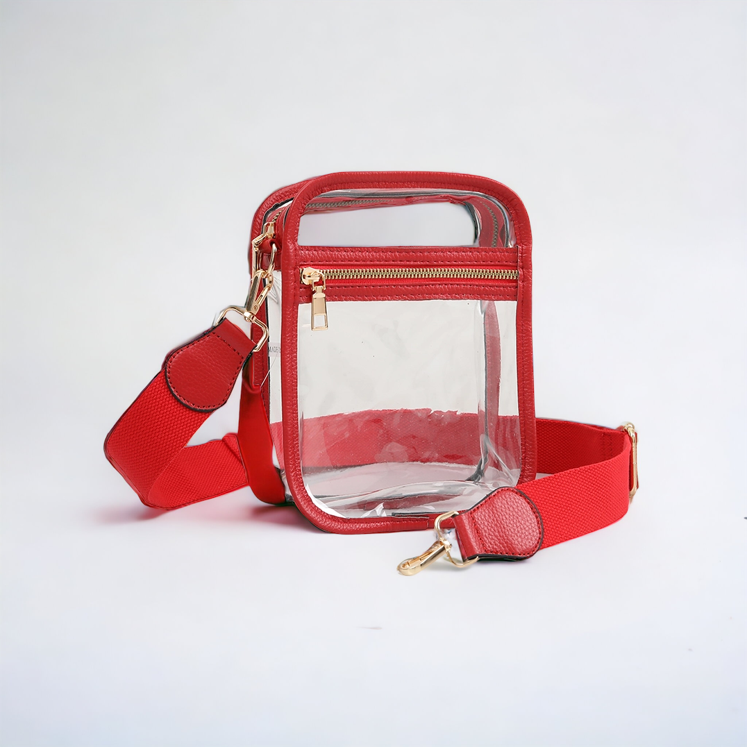 Bring your team spirit and showcase it proudly with our PVC clear bag! With a transparent design and leather trim, this go-anywhere bag is ready for adventure - from game days to concerts and everywhere in between! Featuring two zippers and your team's colors, you'll be ready to cheer on your favorite squad in style!