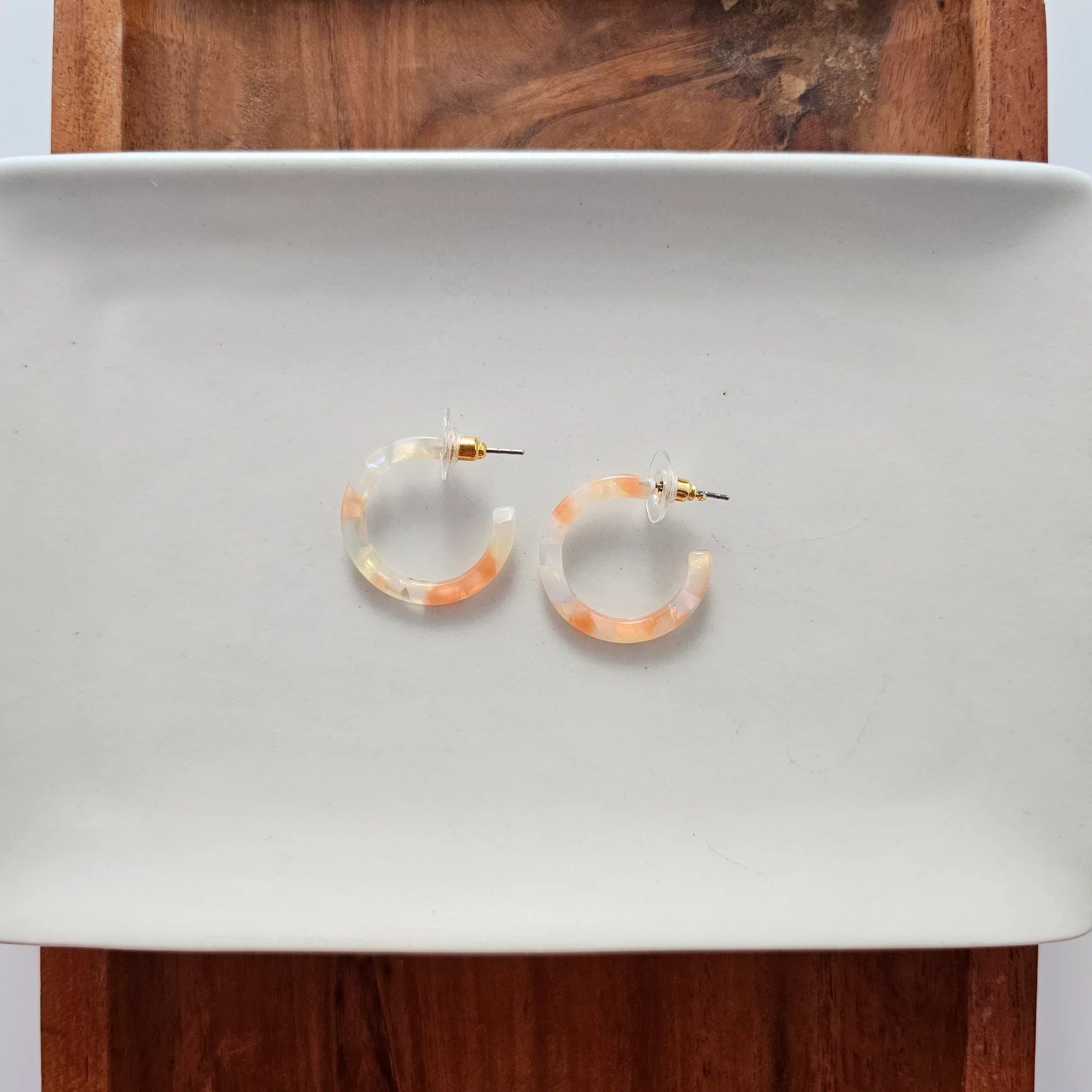 Experience life in style with our Cam Mini hoops! Lightweight and durable, they are crafted from plant-based acetate acrylic to guarantee a secure and comfortable fit. Small yet powerful, these hoops will take your look to the next level!