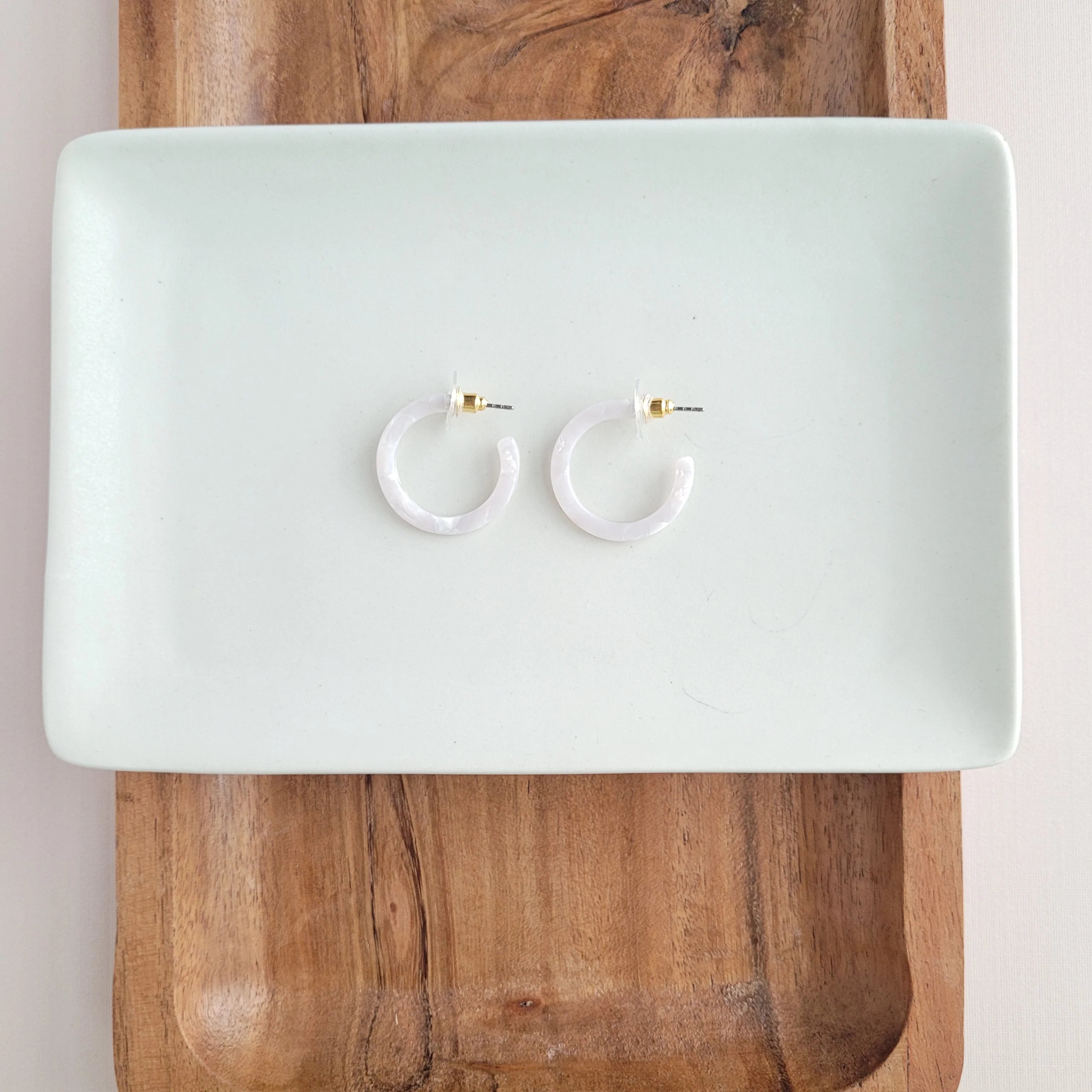 Experience life in style with our Cam Mini hoops! Lightweight and durable, they are crafted from plant-based acetate acrylic to guarantee a secure and comfortable fit. Small yet powerful, these hoops will take your look to the next level!