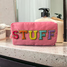 Take your everyday items with you in style with our Stuff Chenille Patch bag! Crafted from water-resistant materials, this bag is designed to keep your stuff safe and dry. Utterly unique with its chenille patches, make a statement with this one-of-kind piece!